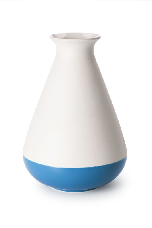 Samen met de pottenbakkers in Vietnam ontwierp Piet Hein Eek vazen die een moderne vorm combineren met traditionele Vietnamese kleuren en motieven. Piet Hein Eek vroeg aan hen om de kraanvogel- bloesem- en bamboemotieven net even anders toe te passen. Daardoor worden de decoraties ineens verrassend grafisch en modern. De buitenkant is gedeeltelijk geglazuurd. De vaas is waterdicht. Hoogte 34 cm, Ø 24 cm.