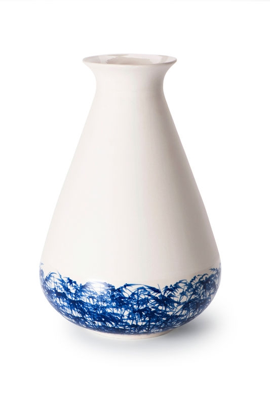 Samen met de pottenbakkers in Vietnam ontwierp Piet Hein Eek vazen die een moderne vorm combineren met traditionele Vietnamese kleuren en motieven. Piet Hein Eek vroeg aan hen om de kraanvogel- bloesem- en bamboemotieven net even anders toe te passen. Daardoor worden de decoraties ineens verrassend grafisch en modern. De vaas is waterdicht, Hoogte 34 cm, Ø 24 cm.